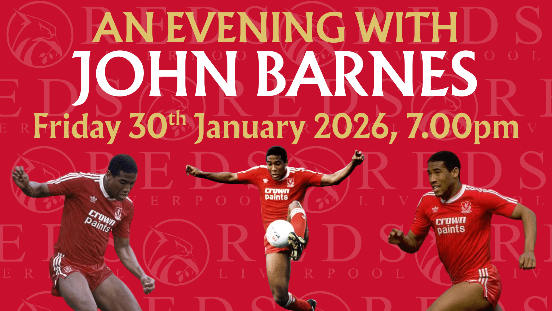 amazing evening of football chat with John Barnes as he discusses his career and answers your questions.